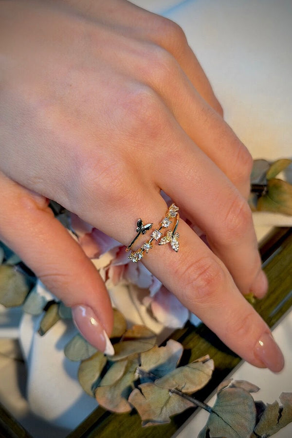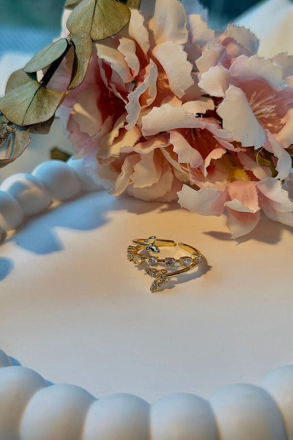 Minimal Kelebek Figürlü Taşlı Vintage Yüzük